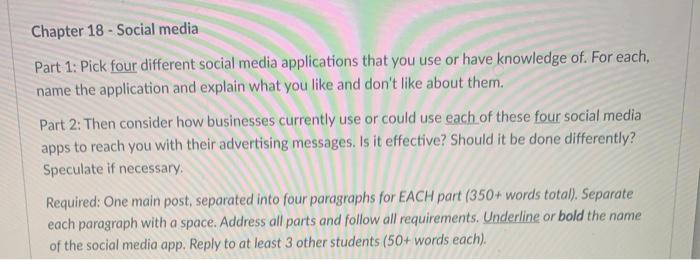 Solved Chapter 18 Social Media Part 1 Pick Four Differ Chegg Com